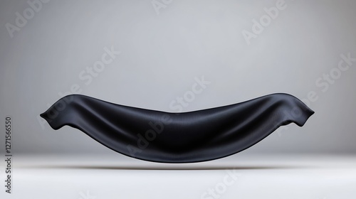 Elegant black fabric gracefully flows in soft light creating a dramatic curve. AI Generated