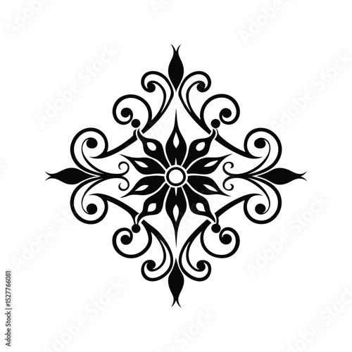 Elegant black floral ornament vector design with detailed swirls and decorative flourishes