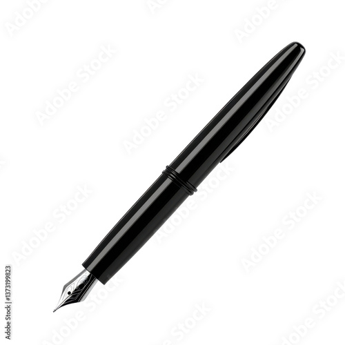 Elegant black fountain pen on a transparent background, showcasing classic writing instrument design and craftsmanship for calligraphy and signature purposes