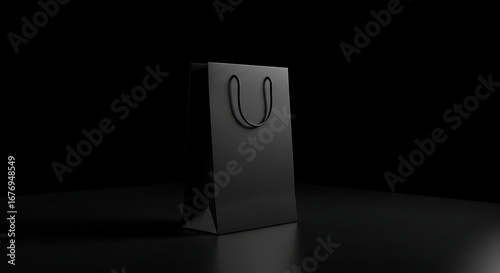 Elegant black gift bag on dark background
