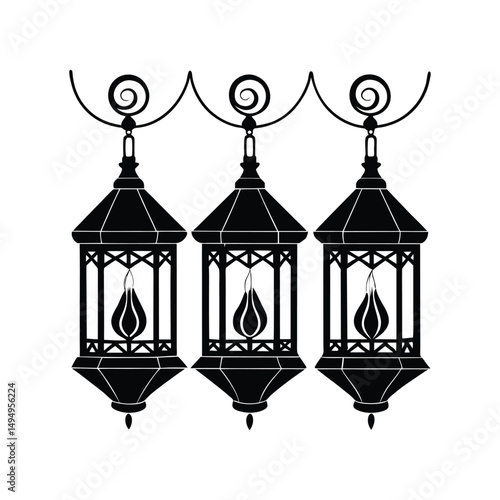 Elegant Black Silhouette of Three Hanging Lanterns Islamic, Moroccan, and Festive Decor