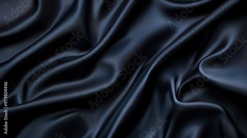 Elegant black silk fabric with rich texture and smooth appearance, perfect for luxurious fashion and interior design.