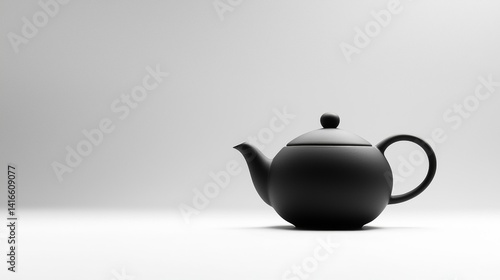 Elegant black teapot placed on a minimalist surface with soft lighting enhancing its sleek design and subtle shadows