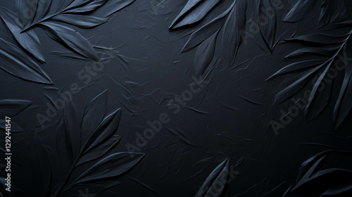 Elegant black textured background with embossed leaf patterns for design projects