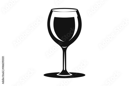 Elegant black wine goblet filled halfway stands gracefully on a white background