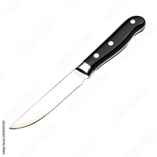 Elegant BlackHandled Steak Knife, Sharp Blade, Silver, Cutlery, Kitchen Tool