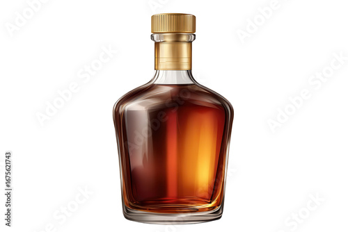 Elegant bottle of brandy with golden cap displayed against a transparent background showcasing rich amber liquid