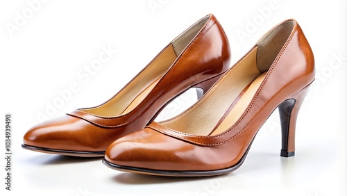 Elegant Brown Leather Summer Women's Closed Shoes with Heel, Top View Photography for Fashion and Footwear Enthusiasts, Isolated on White Background for E-commerce and Advertising