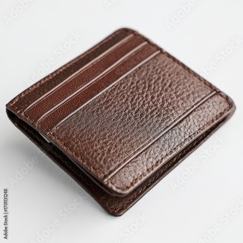 Elegant brown leather wallet with multiple card slots and a textured surface on a neutral background
