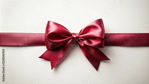 Elegant burgundy satin ribbon bow on white background ideal for gift wrapping, greeting cards, and festive designs