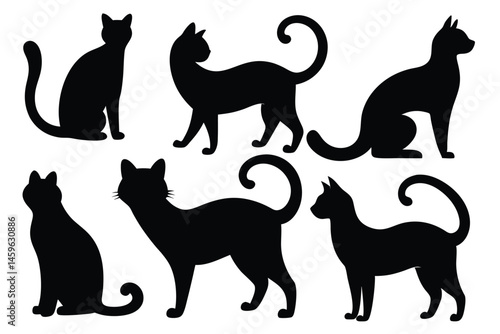 Elegant Cat Silhouette Poses – Feline Vector Icons and Shapes