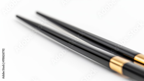 Elegant chopsticks with a holder cut out on a pristine white backdrop.