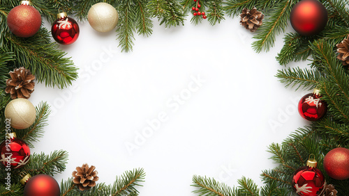 Elegant Christmas Photo Frame with Tree on White Background