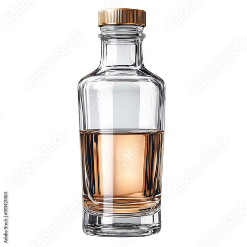 Elegant clear glass bottle with amber liquid and golden lid for spirits