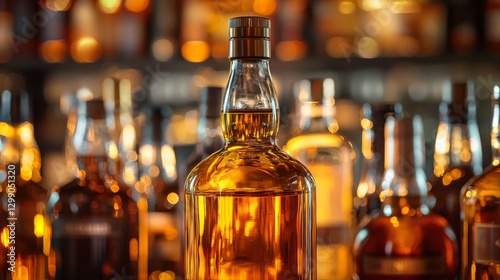 Elegant Collection of Alcoholic Beverage Bottles in a Bar