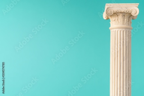Elegant column stands against vibrant turquoise backdrop, showca