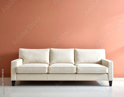 Elegant Cream Sofa Against Peach Wall