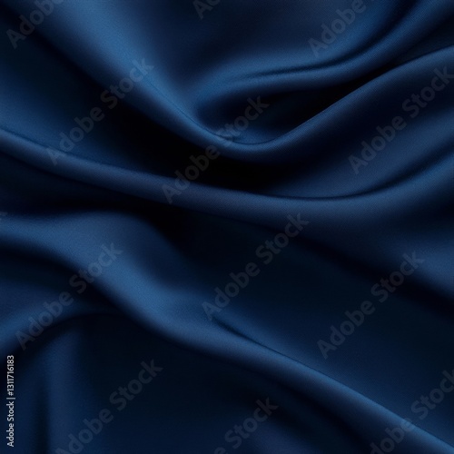 Elegant dark blue fabric with smooth folds and luxurious texture