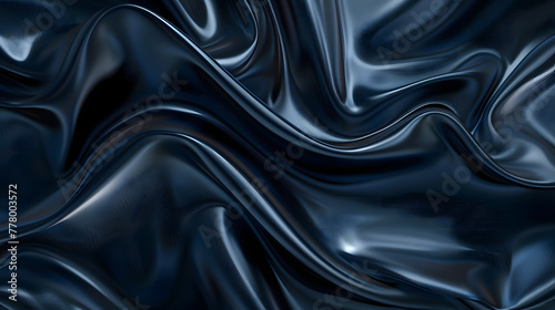 Elegant dark blue silk satin fabric with intricate folds and curves draped on a luxurious background
