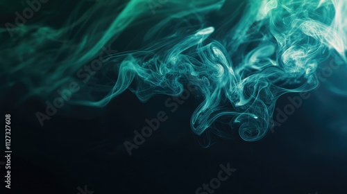 Elegant dark blurred abstract background with smooth blue green gradient and wispy smoke effects for modern design projects