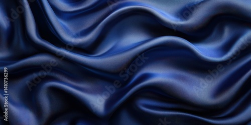 Elegant deep blue silk fabric draping softly with intricate folds and waves