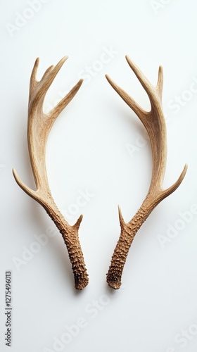 Elegant Deer Antlers on White Background: A Minimalist Nature Study