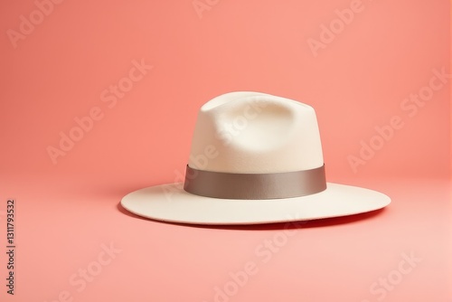 Elegant designer hat positioned on a pastel smooth coral surface