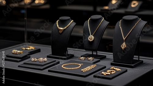 Elegant Display of Gold Jewelry in a Modern Showcase Setting