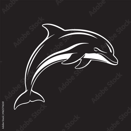 Elegant Dolphin Silhouette on Black Background Marine Wildlife Illustration Ocean Mammal Aquatic Animal Symbol Sea Life Graphic Design Template