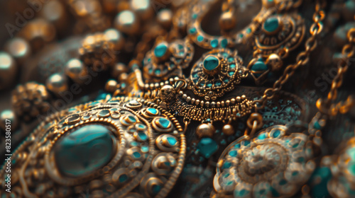 Elegant Eid Jewelry Designs Close-Up, Eid feast, Islamic celebration, Family feast.