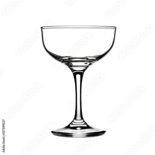 Elegant empty coupe glass on a transparent background, perfect for showcasing cocktail recipes, barware, or celebratory drinks