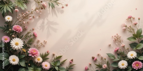 Elegant Floral Background with Pink and White Flowers on a Soft Beige Surface for Design and Decoration