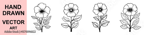 Elegant floral botanical vector drawing with delicate blooming flower stem illustration, hand drawn natural style art for invitations, prints, packaging, logo or textile design