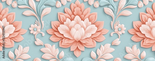 Elegant Floral Design Pattern with Soft Pastels on Blue Background for Home Decor