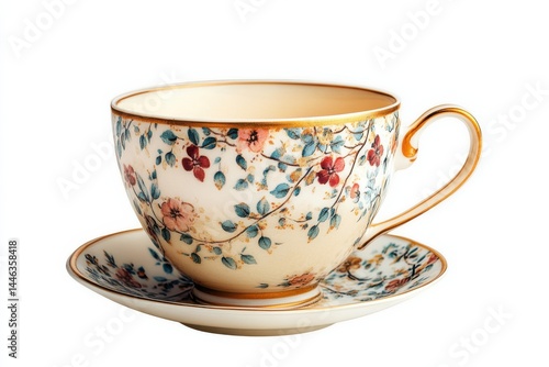 Elegant floral teacup and saucer a delicate vintage design with gold accents and soft lighting