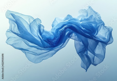 Elegant Flowing Blue Fabric on Soft Background, Ethereal and Light, Perfect for Artistic or Fashion Illustrations and Designs