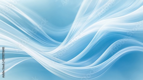 Elegant flowing waves of soft white and blue create a serene, abstract background.