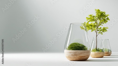 Elegant glass terrariums showcasing vibrant greenery in a minimalist setting.