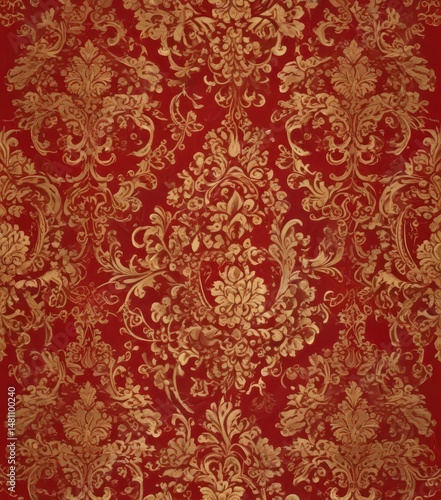 Elegant gold accents on rich red damask, seamless vector design , decorative, red, texture