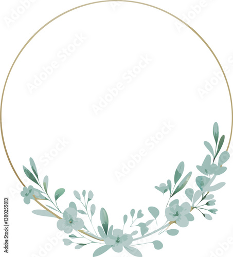Elegant Gold Circle Frame with Watercolor Floral Wreath Design