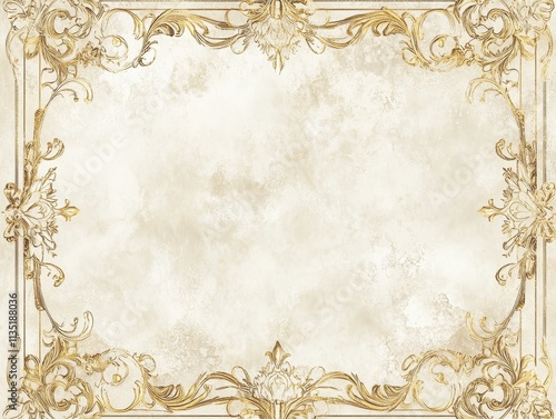 Elegant Gold Ornate Frame on Textured Cream Background, Vintage Decorative Border, Artistic Design Element.