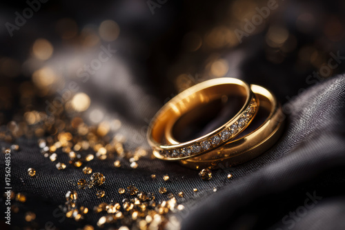 Elegant Gold Wedding Rings on Silk – AI Generative