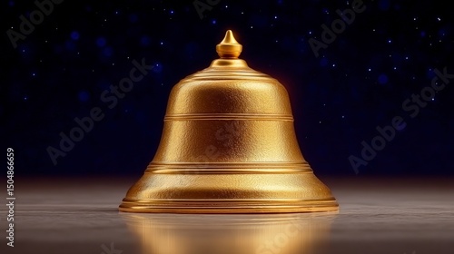 Elegant Golden Bell Shiny Reflective Surface Dark Background Announcement Celebration