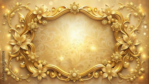 Elegant golden frame with ornate details and subtle floral patterns, surrounded by a soft, dreamy glow, exuding a sense of luxury and sophistication.