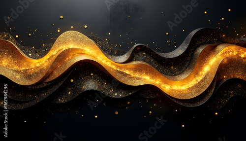 Elegant Golden Glitter Waves on Matte Black Canvas
