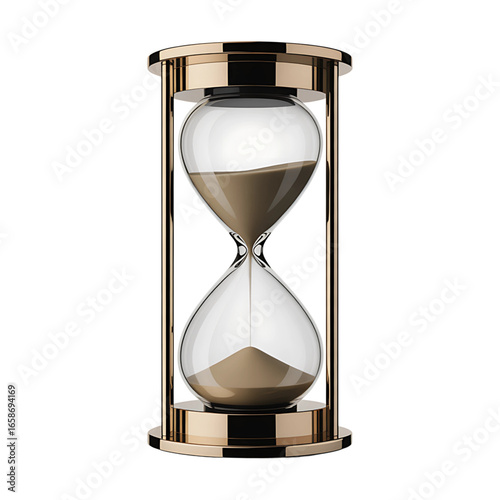 Elegant golden hourglass with flowing sand symbolizing the passage of time and the concept of measurement isolated on transparent background
