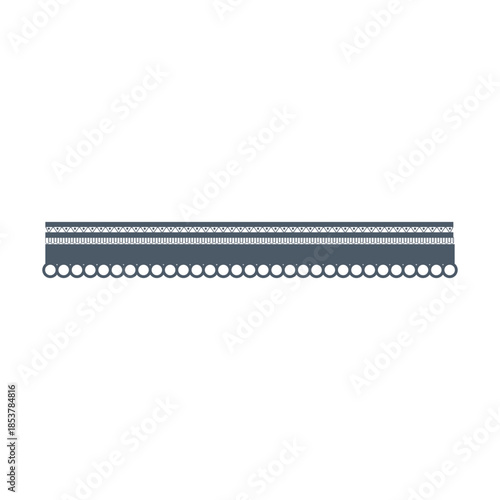 Elegant gray fabric trim displaying a delicate scalloped edge and intricate small patterns, providing a versatile design element for crafting and textile projects