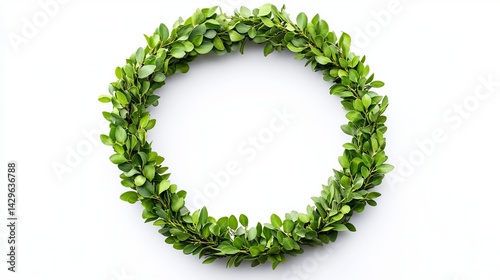 Elegant Green Boxwood Wreath Circle Frame Natural Spring Summer Botanical Decoration Isolated White Background Perfect Floral Design Element Wedding