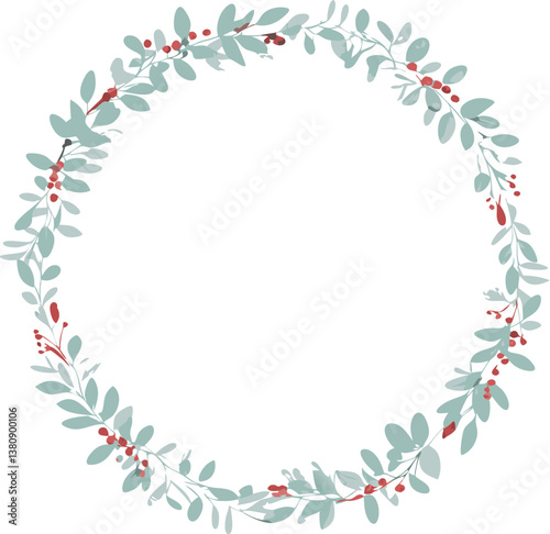 Elegant Greenery Wreath Frame, Berries, Botanical, Circular, Design, Floral, Winter, Holiday, Templa