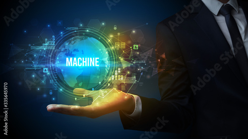 Elegant hand holding MACHINE inscription, digital technology concept